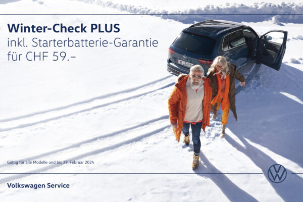 Mit dem umfangreichen Winter-Check PLUS für nur CHF 59.- sind Sie doppelt abgesichert. Springt Ihr Fahrzeug trotz erfolgreich durchgeführtem Winter-Check PLUS nicht an, erhalten Sie kostenlos eine neue Starterbatterie. Angebot gültig bis…